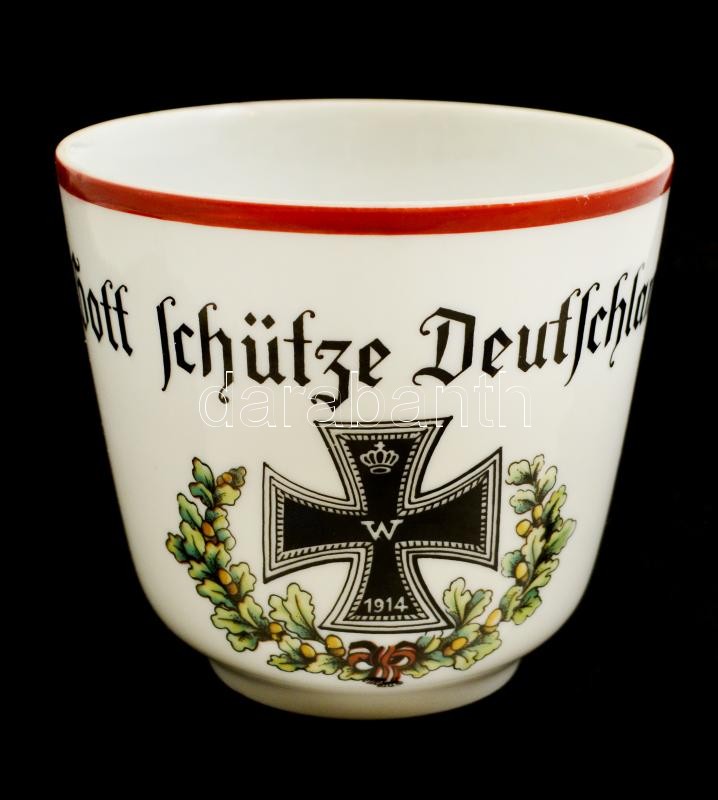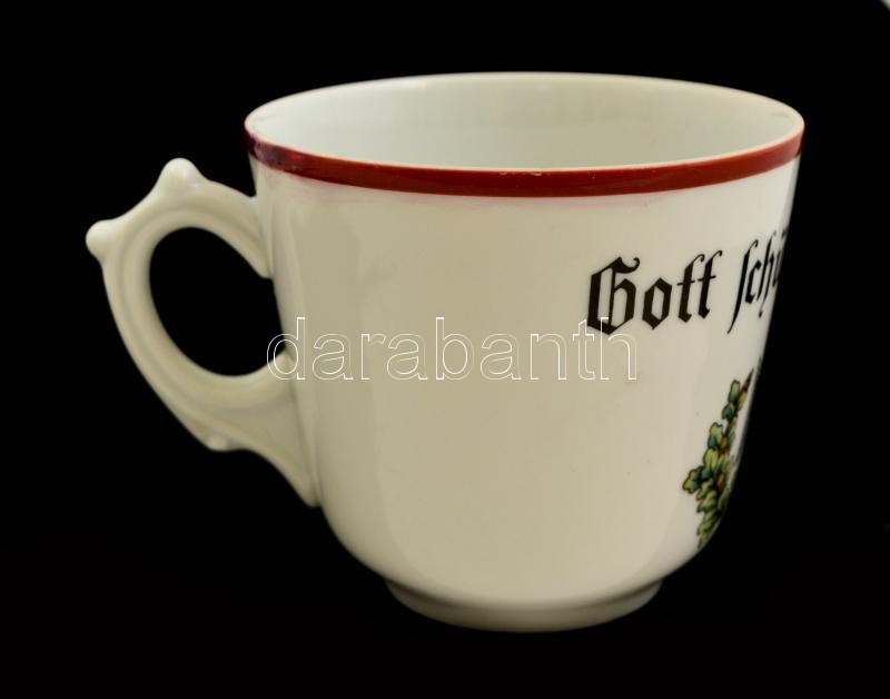 I. világháborús propaganda porcelán kakaós csésze. Bavaria Hohenstrauss, festett porcelán. Hibátlan, jelzett. / Porcelain world war I. propaganda mug. 9 cm