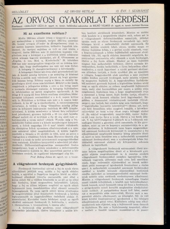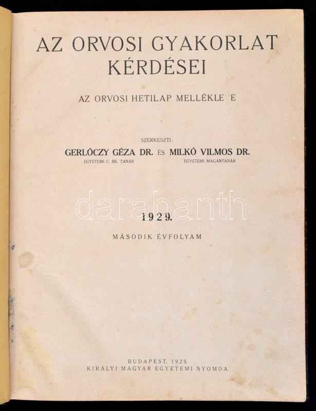 1929 Gerlóczy Géza Dr. - Milkó Vilmos Dr. (szerk.): Az orvosi gyakorlat kérdései. Az Orvosi Hetilap melléklete. Második évfolyam. Teljes évfolyam egybekötve, félvászon kötésben, jó állapotban.