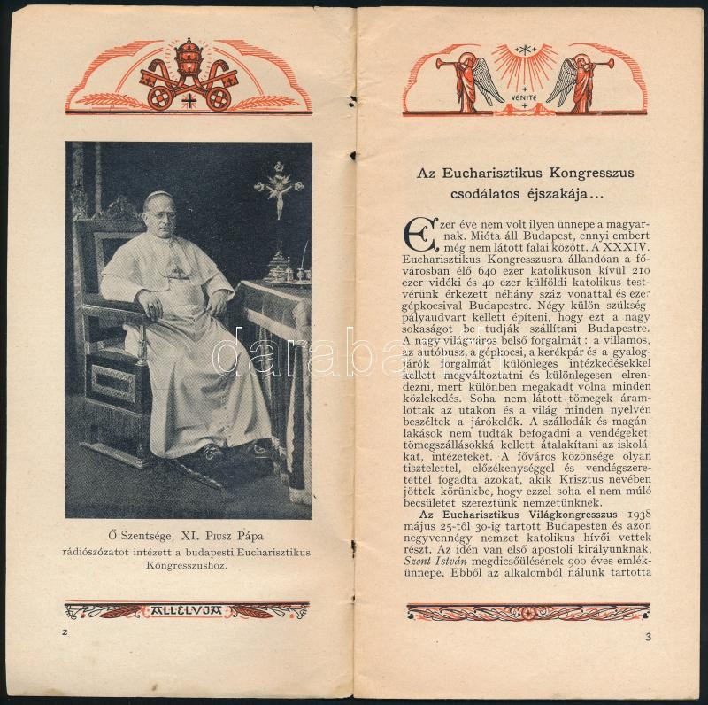 1938 Az Eucharisztikus Kongresszus csodálatos éjszakája... , írta: Hus... https://www.darabanth.com/hu/314-Gyorsarveres/314.0/Festmeny-mutargy-papirregiseg-egyeb/Nyomtatvanyok~100029/1938-Az-Eucharisztikus-Kongresszus-csodalatos-ejszakaja--irta-Huszar-Karoly-32p~II1722810