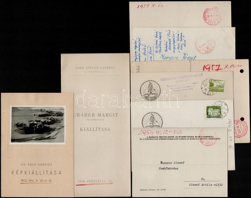 1957-1962 Meghívók képzőművészeti kiállításokra Nemecz József festőműv... https://www.darabanth.com/hu/314-Gyorsarveres/314.0/Festmeny-mutargy-papirregiseg-egyeb/Nyomtatvanyok~100029/1957-1962-Meghivok-kepzomuveszeti-kiallitasokra-Nemecz-Jozsef-festomuvesz-hagyatekabC3~II1722953