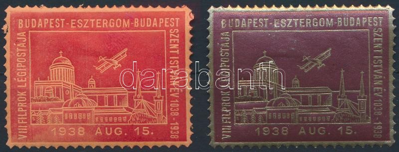 Leírás: 1938 Budapest-Esztergom légiposta 2 klf levélzáró