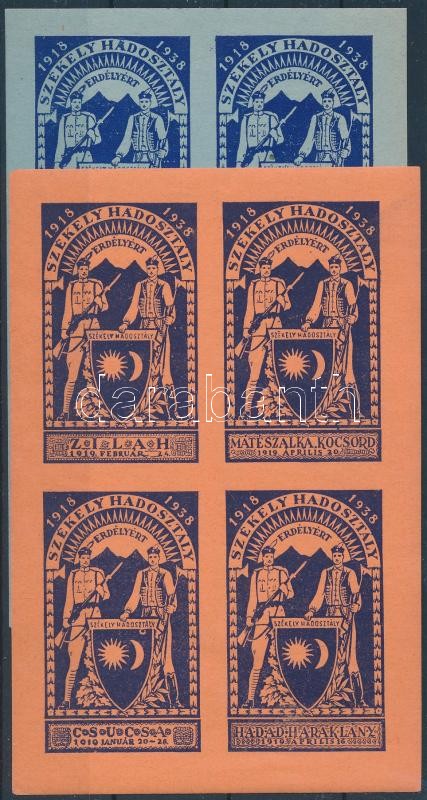 1938 Székely hadosztály Erdélyért kék és narancsszínű kisív https://www.darabanth.com/hu/314-Gyorsarveres/314.0/Festmeny-mutargy-papirregiseg-egyeb/Parafilatelia~100014/1938-Szekely-hadosztaly-Erdelyert-kek-es-narancsszinu-kisiv~II1721166