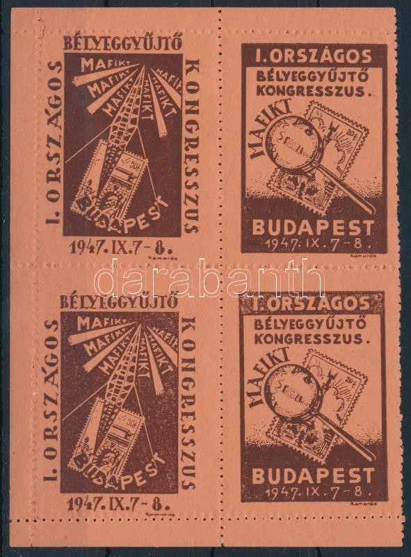 Leírás: 1947 I. Országos Bélyeggyűjtő Kongresszus levélzáró 4-es tömb