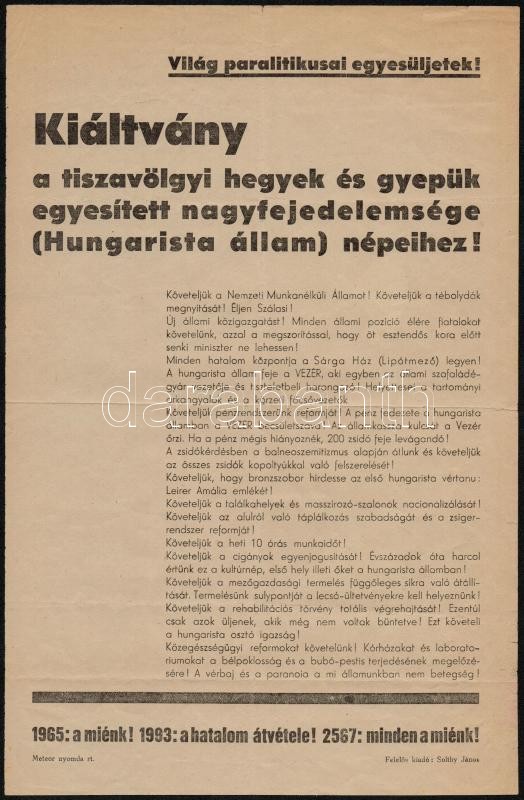 cca 1933 Hungaristákat kifigurázó nyilas ellenes plakát. 21x32 cm https://www.darabanth.com/hu/314-Gyorsarveres/314.0/Festmeny-mutargy-papirregiseg-egyeb/Plakat~100030/cca-1933-Hungaristakat-kifigurazo-nyilas-ellenes-plakat-21x32-cm~II1720215