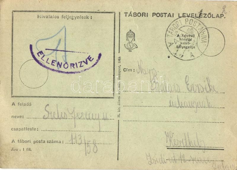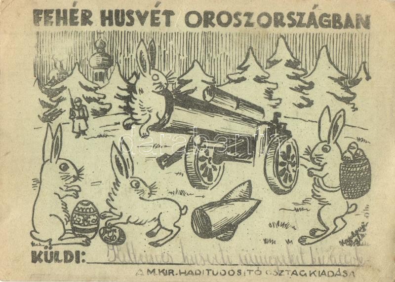 1942 Fehér Húsvét Oroszországban. Második világháborús tábori posta, M. kir. haditudósító osztag kiadása / WWII Hungarian military Easter greeting field post, rabbits (EK)