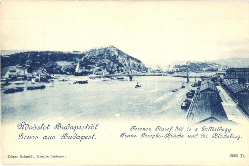 Budapest, Ferenc József híd és a Gellérthegy, gőzhajók. Edgar Schmidt ... https://www.darabanth.com/hu/314-Gyorsarveres/314.0/Kepeslapok/Magyarorszag~400005/Budapest-Ferenc-Jozsef-hid-es-a-Gellerthegy-gozhajok-Edgar-Schmidt-kiadasa~II1723491