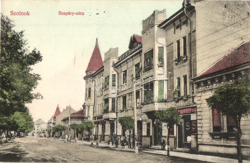 Szolnok, Szapáry utca, Varrógép és Wolf Dezső üzlete (EK) https://www.darabanth.com/hu/314-Gyorsarveres/314.0/Kepeslapok/Magyarorszag~400005/Szolnok-Szapary-utca-Varrogep-es-Wolf-Dezso-uzlete-EK~II1718752