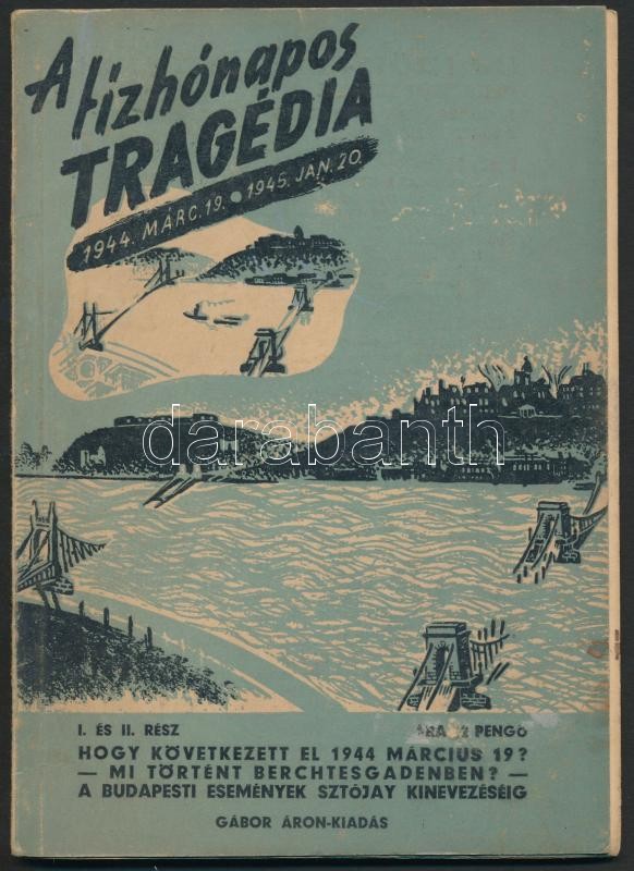 A tízhónapos tragédia. 1944. március 19.-1945. január 20. Első és második rész. Hogyan következett el 1944. március 19.? Mi történt Berchtesgadenben? A budapesti események a Szótjay kormány kinevezéséig. Bp., 1945, Gábor Áron Könyvkiadó Vállalat. Kiadói papírkötés, a könyvtest kijár a borítóból, de maga a füzet jó állapotban.