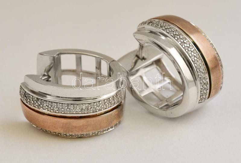 Leírás: Ezüst(Ag) aranyozott, apró kövekkel díszített fülbevalópár, jelzett, 2x1,7 cm, bruttó: 9,5 g