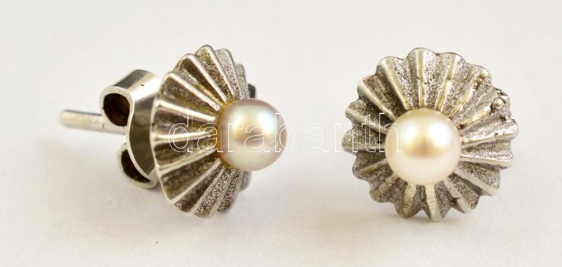 Leírás: Ezüst(Ag) gyöngyös fülbevalópár, jelzett, d: 0,9 cm, bruttó: 1,7 g