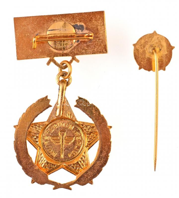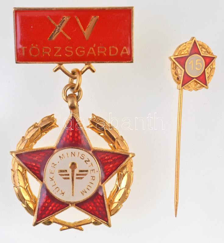 Leírás: ~1970-1980. "XV Törzsgárda - Külkereskedelmi Minisztérium" aranyozott, zománcozott jelvény + miniatűr kitűző T:2