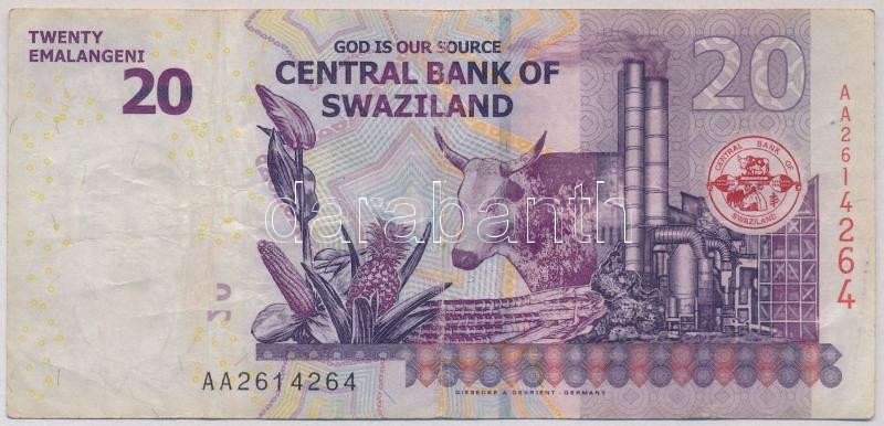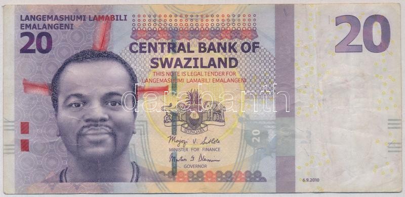 Swaziland 2010. 20 Emalangeni C:VG https://www.darabanth.com/hu/314-Gyorsarveres/314.0/Numizmatika/Kulfoldi-bankjegyek~500011/Szvazifold-2010-20E-TIII---Swaziland-2010-20-Emalangeni-CVG~II1721426