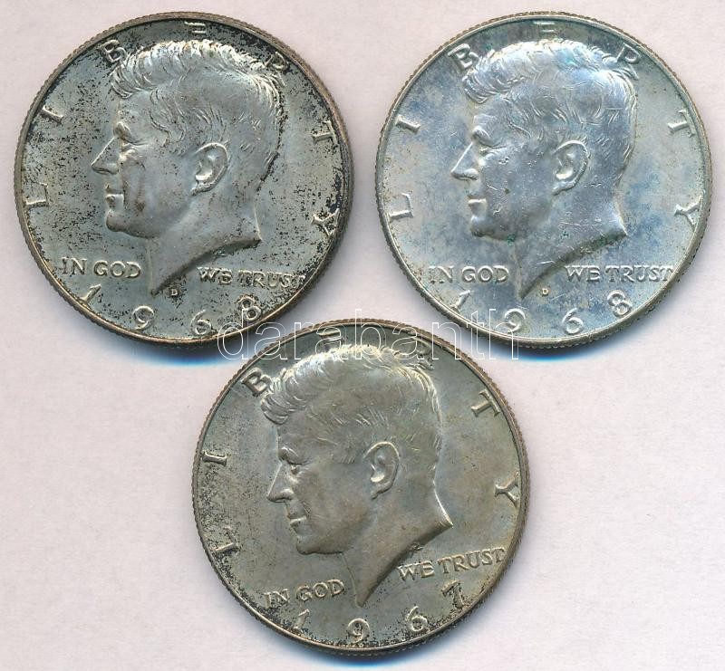 Amerikai Egyesült Államok 1967. 1/2$ Ag + 1968D 1/2$ Ag "Kennedy" (2x) T:1-,2 patina
