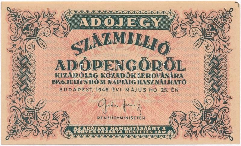 1946. 100.000.000AP sorozat- és sorszám nélkül T:II https://www.darabanth.com/hu/314-Gyorsarveres/314.0/Numizmatika/Magyar-bankjegyek~500006/1946-100000000AP-sorozat-es-sorszam-nelkul-TII~II1718520