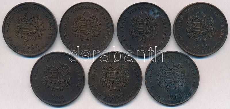 Leírás: Bognár György (1944- ) 1987-1991. "MÉE Gyöngyösi Csoport - Aradi Vértanúk" 7xklf emlékérem tétel T:2 patina