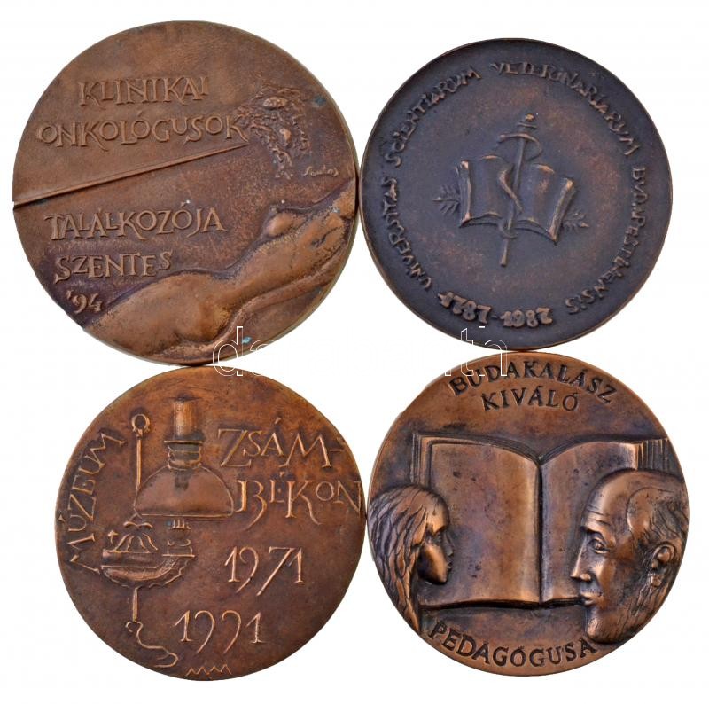 Leírás: Vegyes: 4db-os plakett tétel, benne 1994. "Klinikai Onkológusok Találkozója Szentes '94" Br plakett, DN "Budakalász Kiváló Pedagógusok" Br plakett, 1987. "Universitas Scientiarum Veterinariarum Budapestiensis" Br plakett, 1991. "Múzeum Zsámbékon" Br plakett T:2