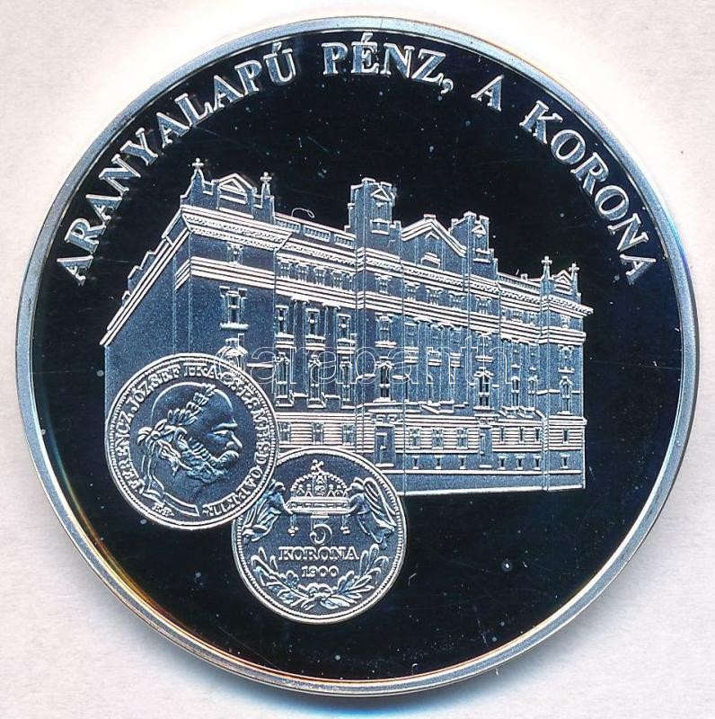 Leírás: DN "A magyar pénz krónikája - Aranyalapú pénz, a korona" Ag emlékérem tanúsítvánnyal (20g/0.999/38,61mm) T:PP