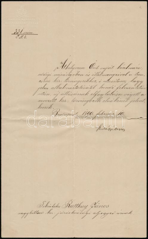 1890 Okirat Szilágyi Dezső (1840-1901) igazságügy-miniszter aláírásáva... https://www.darabanth.com/hu/315-Gyorsarveres/315.0/Festmeny-mutargy-papirregiseg-egyeb/Alairas~500025/1890-Okirat-Szilagyi-Dezso-1840-1901-igazsagugy-miniszter-alairasaval~II1712091