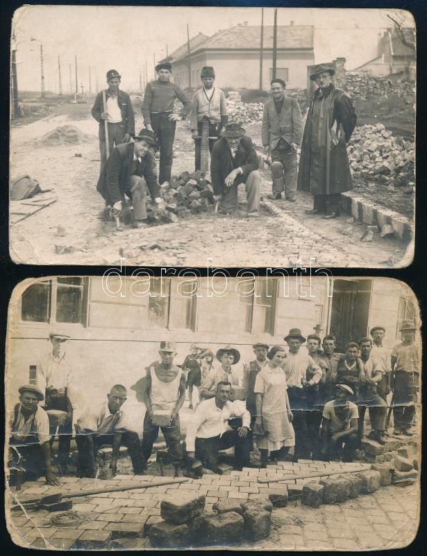 Leírás: cca 1910 Útburkolók, kövezők 2 db kissé megviselt fotólap