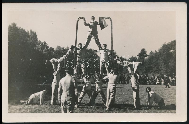 cca 1930-1940 Tornászok csoportja, fotólap, 9x14 cm https://www.darabanth.com/hu/315-Gyorsarveres/315.0/Festmeny-mutargy-papirregiseg-egyeb/Foto~2500018/cca-1930-1940-Tornaszok-csoportja-fotolap-9x14-cm~II1727469