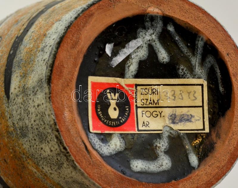 Leírás: Iparművészeti Vállalatos Gorka Lívia mázas kerámia váza, mázhibával, jelzett, m: 23 cm