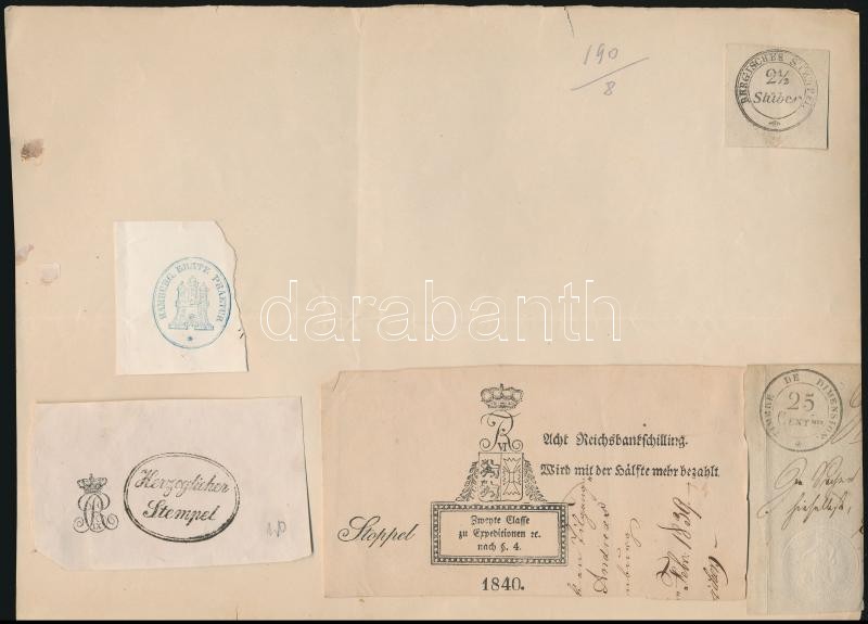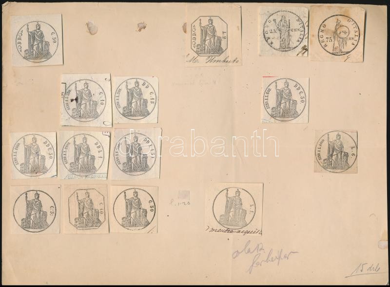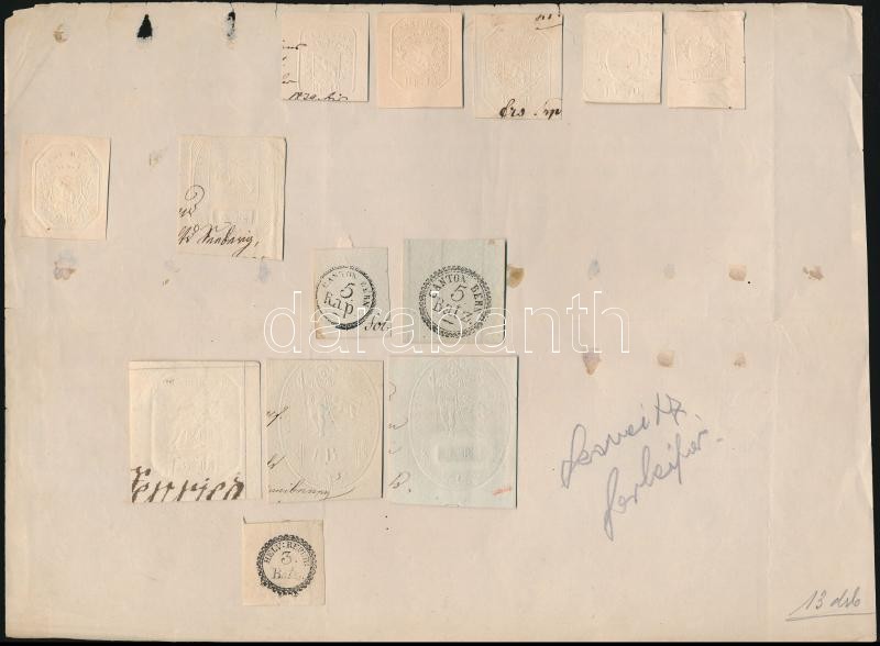 cca 1800-1900 Nagy szignetta és lenyomat gyűjtemény. 98 db benyomott és pecsételt okirati szignetta, szárazpecsét lenyomat kivágásokon / Collection of 98 signettas, and dry seal marks