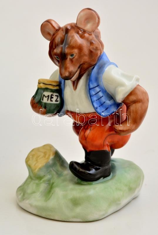 Leírás: Herendi mézet cipelő maci, kézzel festett, jelzett, hibátlan, m:14 cm
