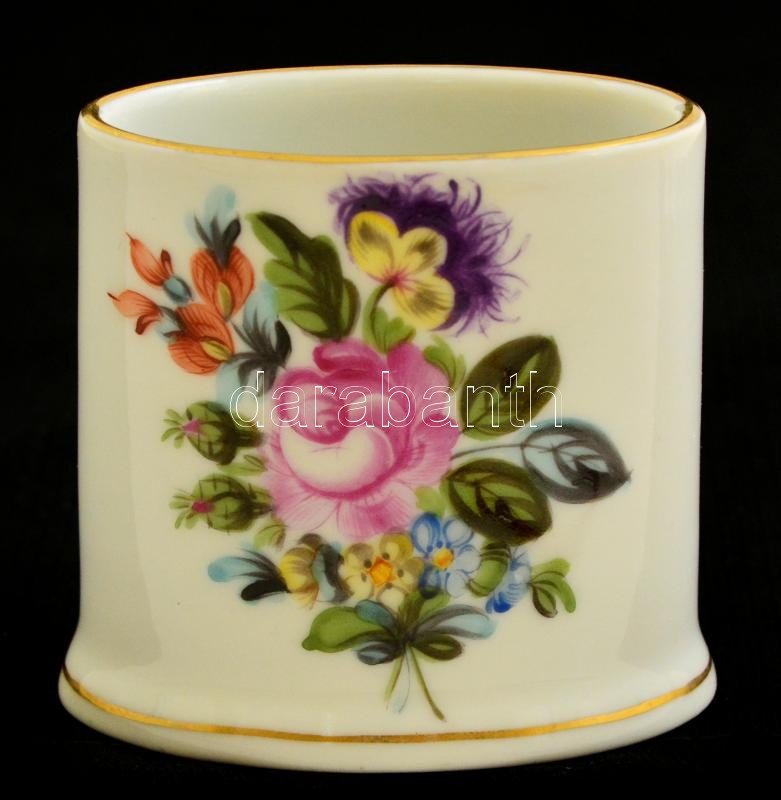 Leírás: Herendi virág mintás fogpiszkálótartó, kézzel festett, jelzett, hibátlan, m:5,5 cm, h:6 cm