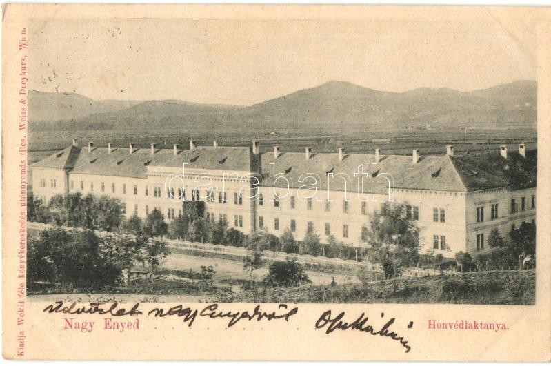 Leírás: 1899 Nagyenyed, Aiud; Honvéd laktanya. Wokál kiadása / military barracks (EK)