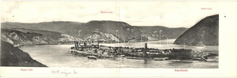 Leírás: Ada Kaleh, Magyar-román-szerb határ. Ali Mehmed kiadása / Hungarian-Romanian-Serbian border, panoramacard