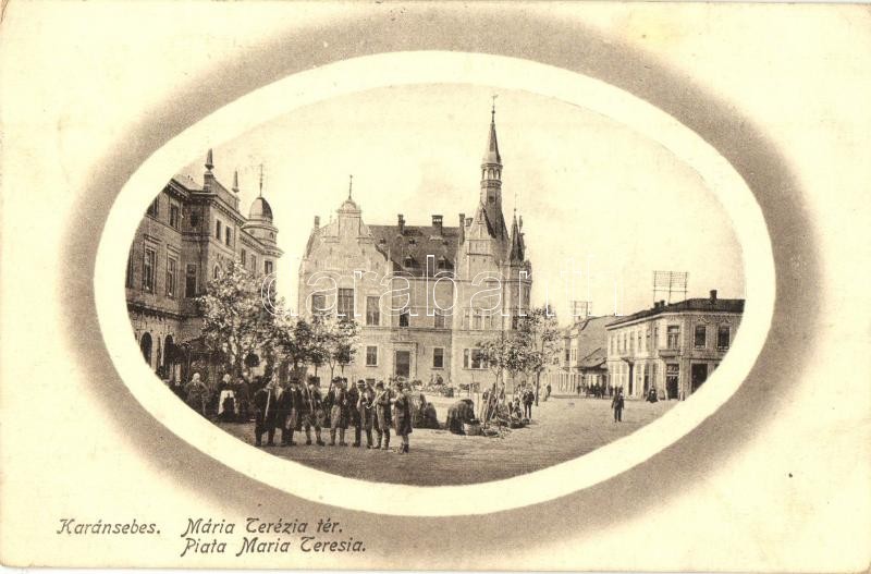 Karánsebes, Caransebes; Mária Terézia tér, piac / market square https://www.darabanth.com/hu/315-Gyorsarveres/315.0/Kepeslapok/Erdely~1000005/Karansebes-Caransebes-Maria-Terezia-ter-piac-market-square~II1725033