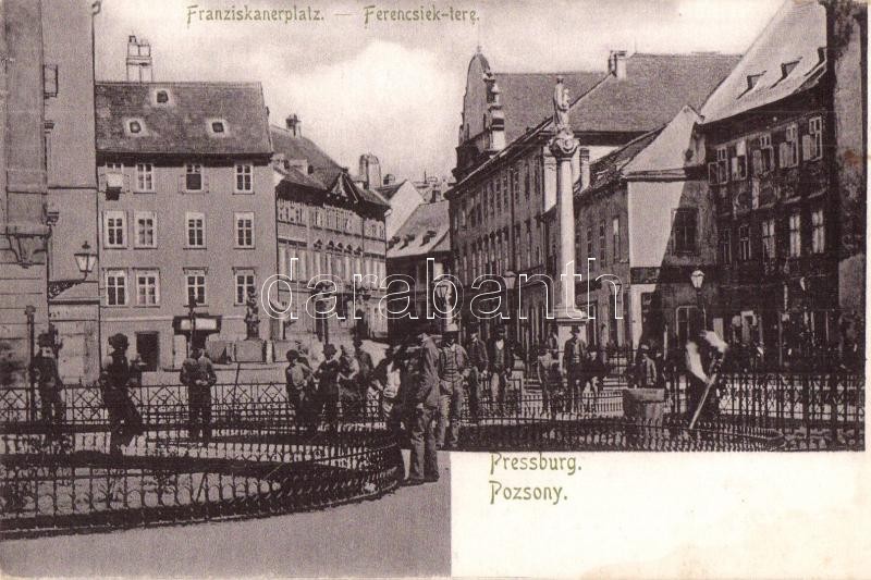 Leírás: Pozsony, Pressburg, Bratislava; Ferenciek tere, szobor / square, monument