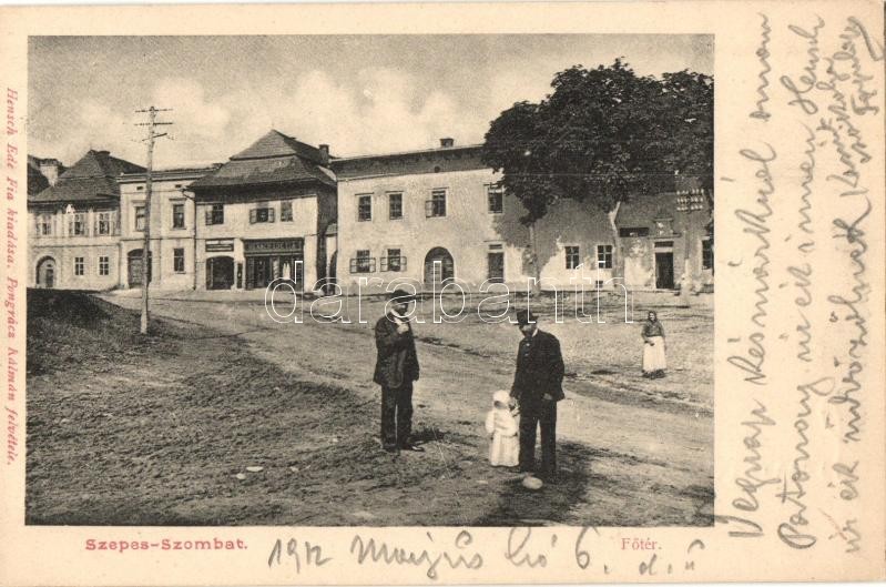 Leírás: Szepesszombat, Spisská Sobota; Fő tér, Hensch Ede fia üzlete és saját kiadása / main square, shop
