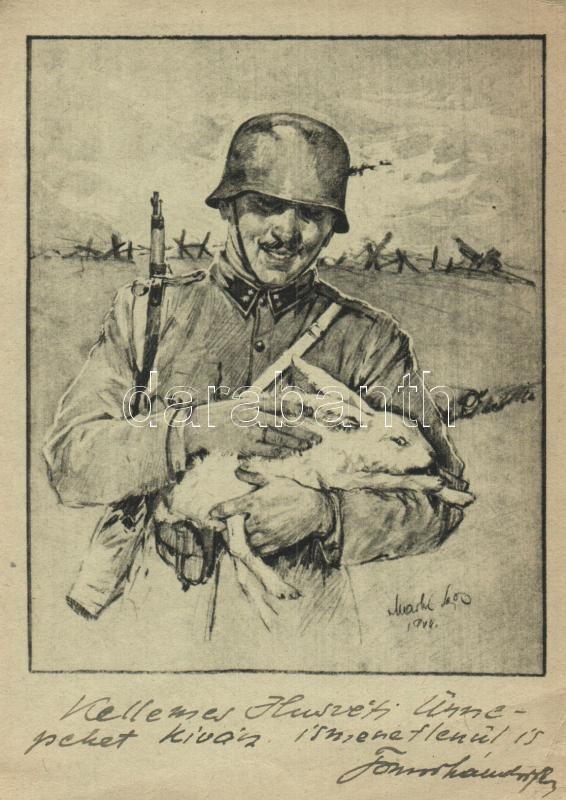 Leírás: 1944 Magyar katonai Húsvéti üdvözlet. kiadja a M. Kir. Honvéd Haditudósító Osztály Parancsnoksága / WWII Hungarian military Easter s: Markó Lajos (EK)