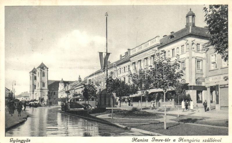 Gyöngyös, Hanisz Imre tér, Hungária szálloda, Országzászló, autóbusz, ... https://www.darabanth.com/hu/315-Gyorsarveres/315.0/Kepeslapok/Magyarorszag~1000004/Gyongyos-Hanisz-Imre-ter-Hungaria-szalloda-Orszagzaszlo-autobusz-elazott-utca~II1730065