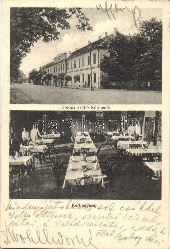Körmend, Korona szálloda, kerthelyiség, pincérek. Háber kiadása https://www.darabanth.com/hu/315-Gyorsarveres/315.0/Kepeslapok/Magyarorszag~1000004/Kormend-Korona-szalloda-kerthelyiseg-pincerek-Haber-kiadasa~II1725129