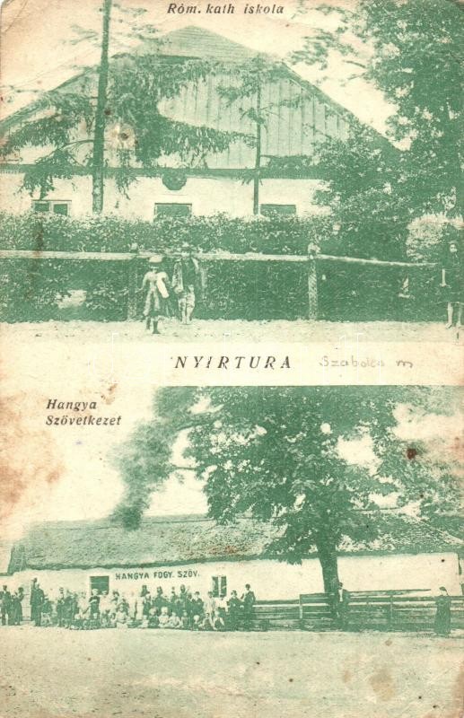 Nyírtura, Római katolikus iskola, Hangya szövetkezet (fa) https://www.darabanth.com/hu/315-Gyorsarveres/315.0/Kepeslapok/Magyarorszag~1000004/Nyirtura-Romai-katolikus-iskola-Hangya-szovetkezet-fa~II1726356