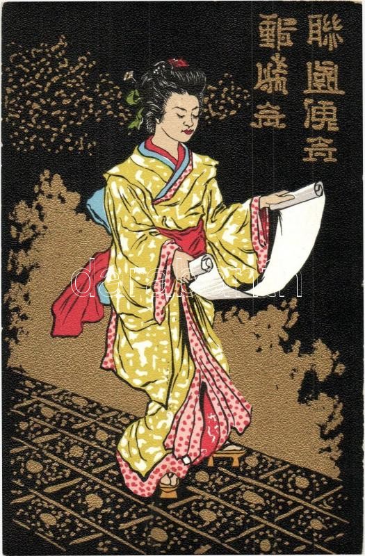 Leírás: Vino di China ferruginoso Serravallo / J. Serravallo's Chinese wine advertisement art postcard with geisha
