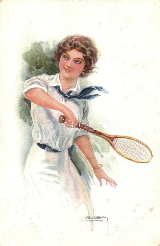 Italian art postcard. Lady with tennis racket. Erkal No. 336/3. s: Usa... https://www.darabanth.com/hu/315-Gyorsarveres/315.0/Kepeslapok/Sport~1000071/Italian-art-postcard-Lady-with-tennis-racket-Erkal-No-3363-s-Usabal-Rb~II1727028