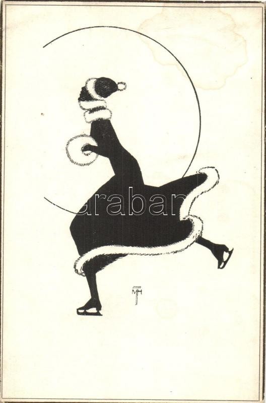 Lady ice skating. silhouette art postcard s: M.H. (fl) https://www.darabanth.com/hu/315-Gyorsarveres/315.0/Kepeslapok/Sport~1000071/Lady-ice-skating-silhouette-art-postcard-s-MH-fl~II1727080