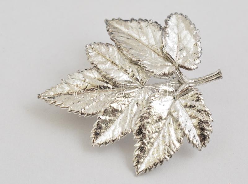 Leírás: Ezüst ( Ag.) leveles kitűző, jelzett (Flora Dancia), 3,5×3,5 cm, nettó:5,7 g