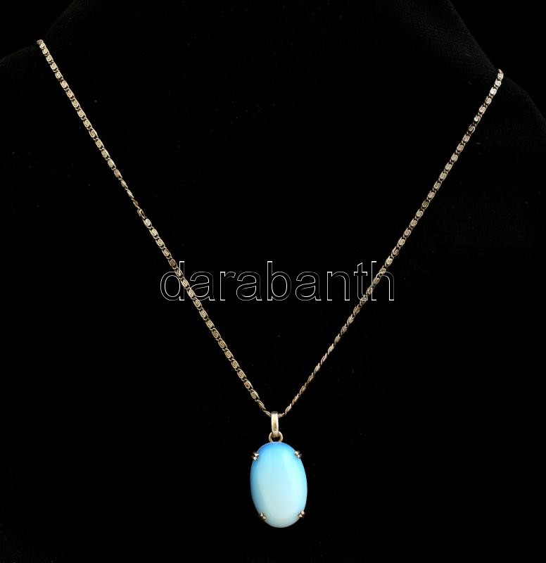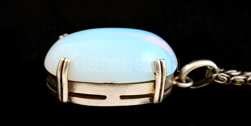 Leírás: Ezüst(Ag) lánc szintetikus tejopál medállal, jelzett, h: 44 cm, bruttó: 10,5 g