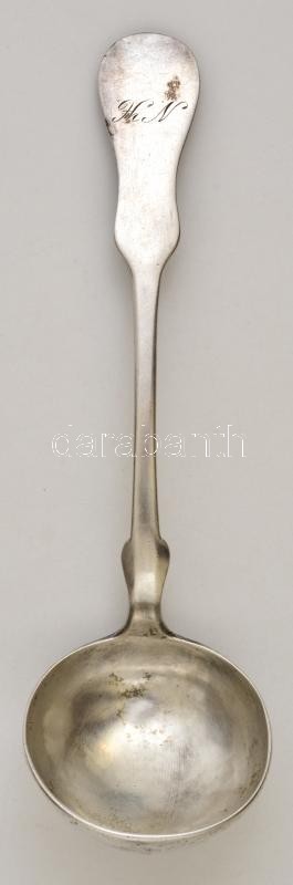Leírás: Ezüst(Ag) monogramos merőkanál, jelzett, horpadással, h: 23 cm, nettó: 118 g