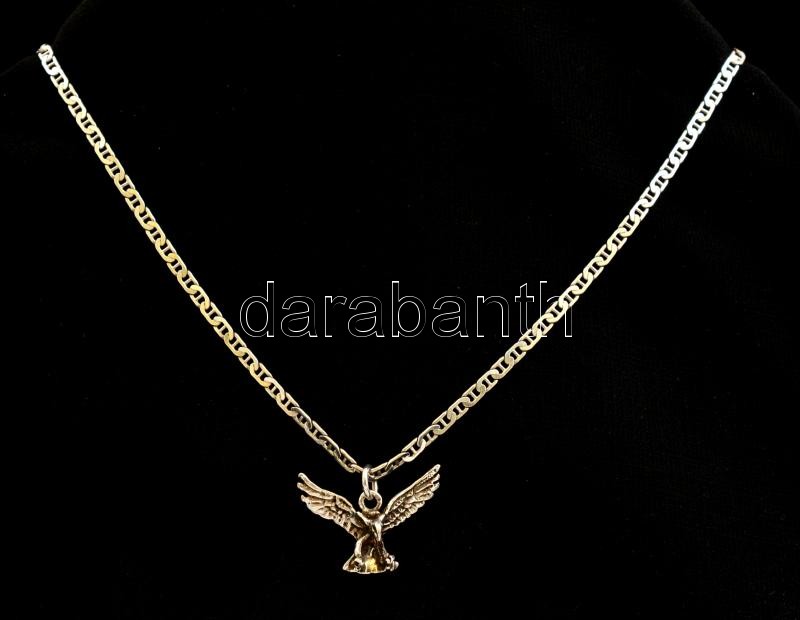 Leírás: Ezüst(Ag) pálcikás nyaklánc, sas függővel, jelzett, h: 51 cm, 2,7x2 cm,nettó: 10,6 g