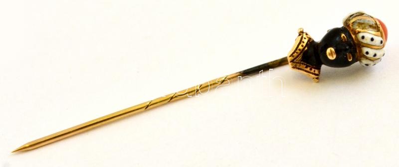 Leírás: Szerecsen fejes arany és zománc melltű, kalaptű. Lepattanással / Enameled gold hat pin 2g