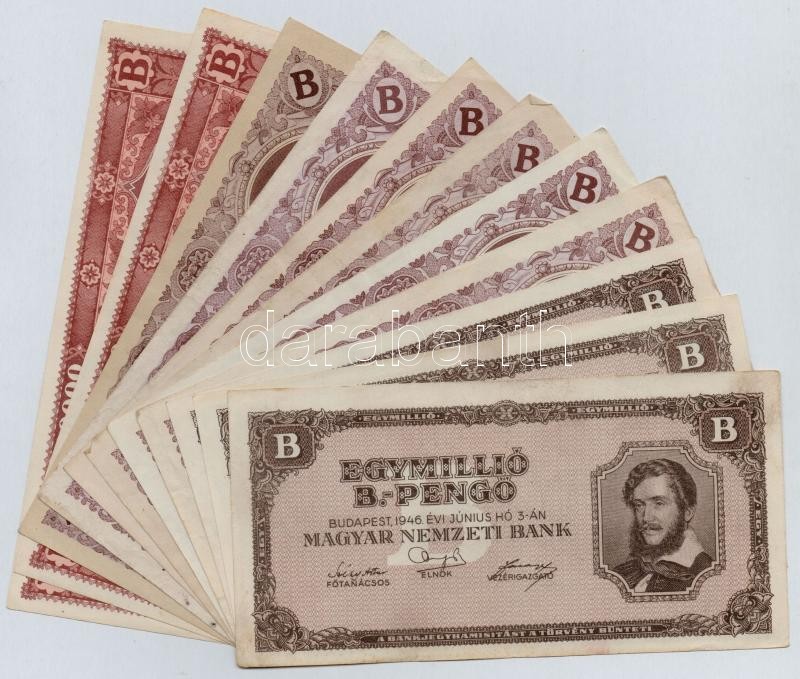 Leírás: 1946. 10.000BP (6x) + 100.000BP (2x) + 1.000.000BP (3x) T:II,III
