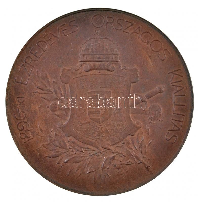 Leírás: Beck Ötvös Fülöp (1873-1945) 1896. "1896-iki Ezredéves Országos Kiállítás / Közreműködők Érme" Br emlékérem, sérült, eredeti dísztokban (60mm) T:2