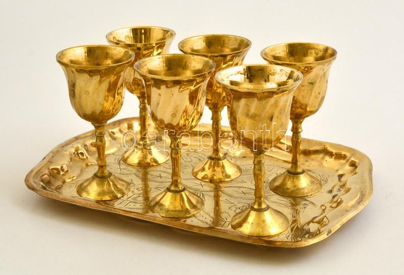 Leírás: Indiai fém likőrőspohár készlet, tálcával, 21×14,5 cm, m:8,5 cm (6×)