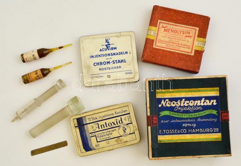 Régi orvosi ampullák, gyógyszeres dobozok, stb., összesen 8 db https://www.darabanth.com/hu/316-Gyorsarveres/316.0/Festmeny-mutargy-papirregiseg-egyeb/Bolhapiac~11/Regi-orvosi-ampullak-gyogyszeres-dobozok-stb-osszesen-8-db~II1738821