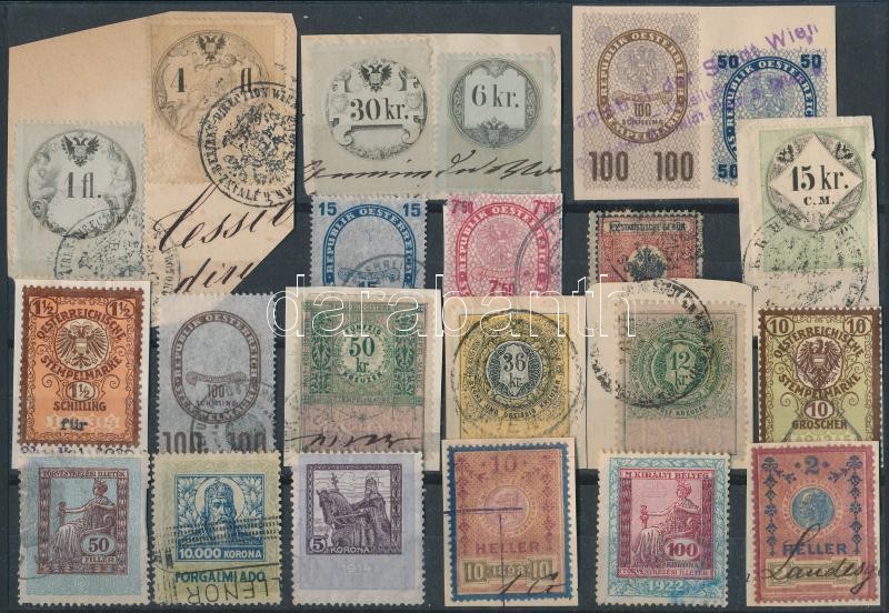 Leírás: 22 db régi magyar és osztrák okmánybélyeg